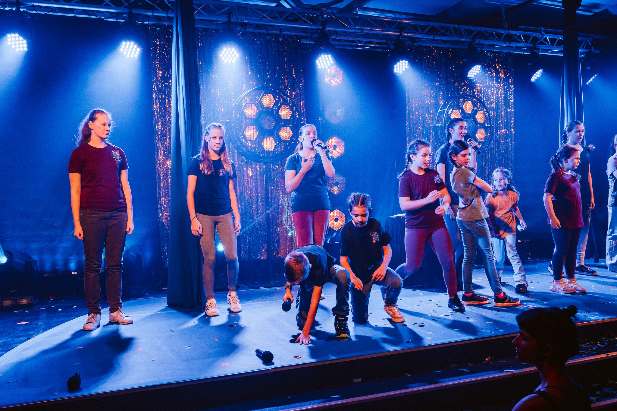 Gala zum 15. Bestehen der blu:boks Kinder- und Jugendbildung gGmbH in Berlin. 120 Mitwirkende Kinder- und Jugendliche aus Berlin-Lichtenberg, Gäste, Ehemalige, Auma Obama, der Bürgermeister von Lichtenberg sowie Klaus & Lenimaus.